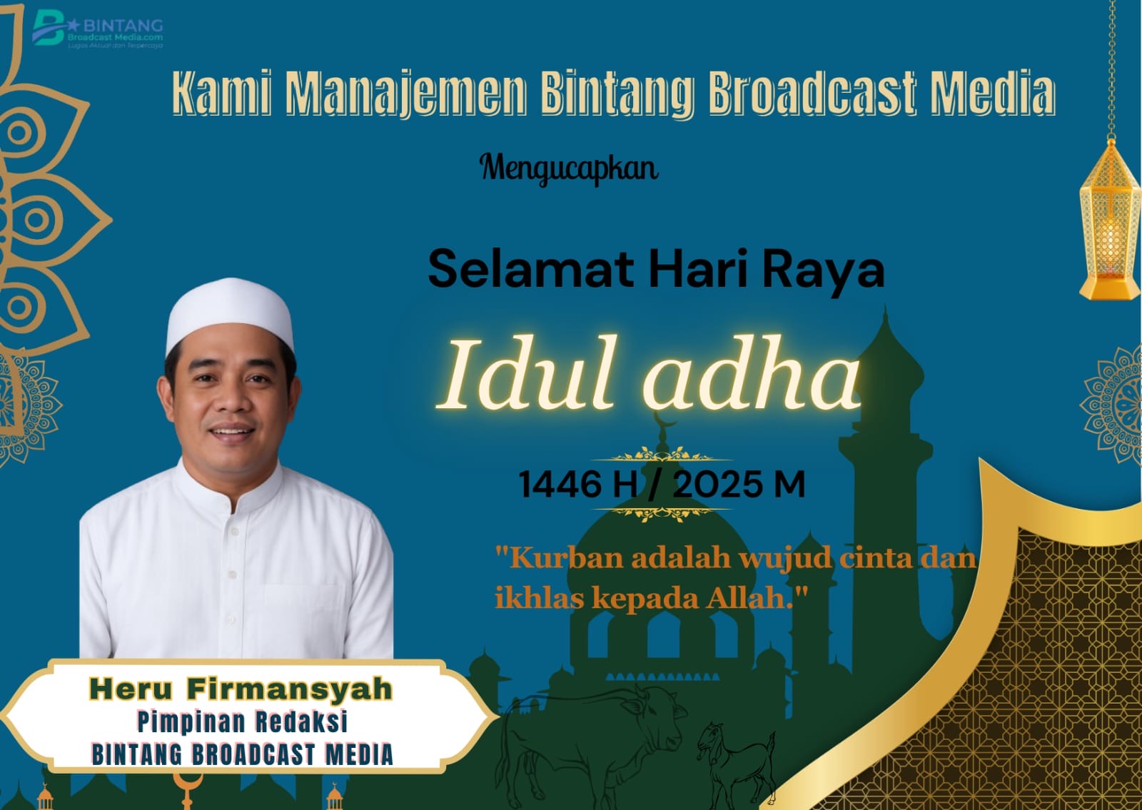 Bandar Lampung.5 Juni 2025.Meski usianya belum genap 100 hari, Bintang Broadcast Media (BBM) telah membuktikan komitmennya sebagai media yang peduli dan hadir untuk masyarakat. Dalam momentum Hari Raya Iduladha 1446 H, BBM menyalurkan hewan kurban ke sejumlah titik yang membutuhkan sebagai bentuk kepedulian sosial dan pengabdian sejak dini.