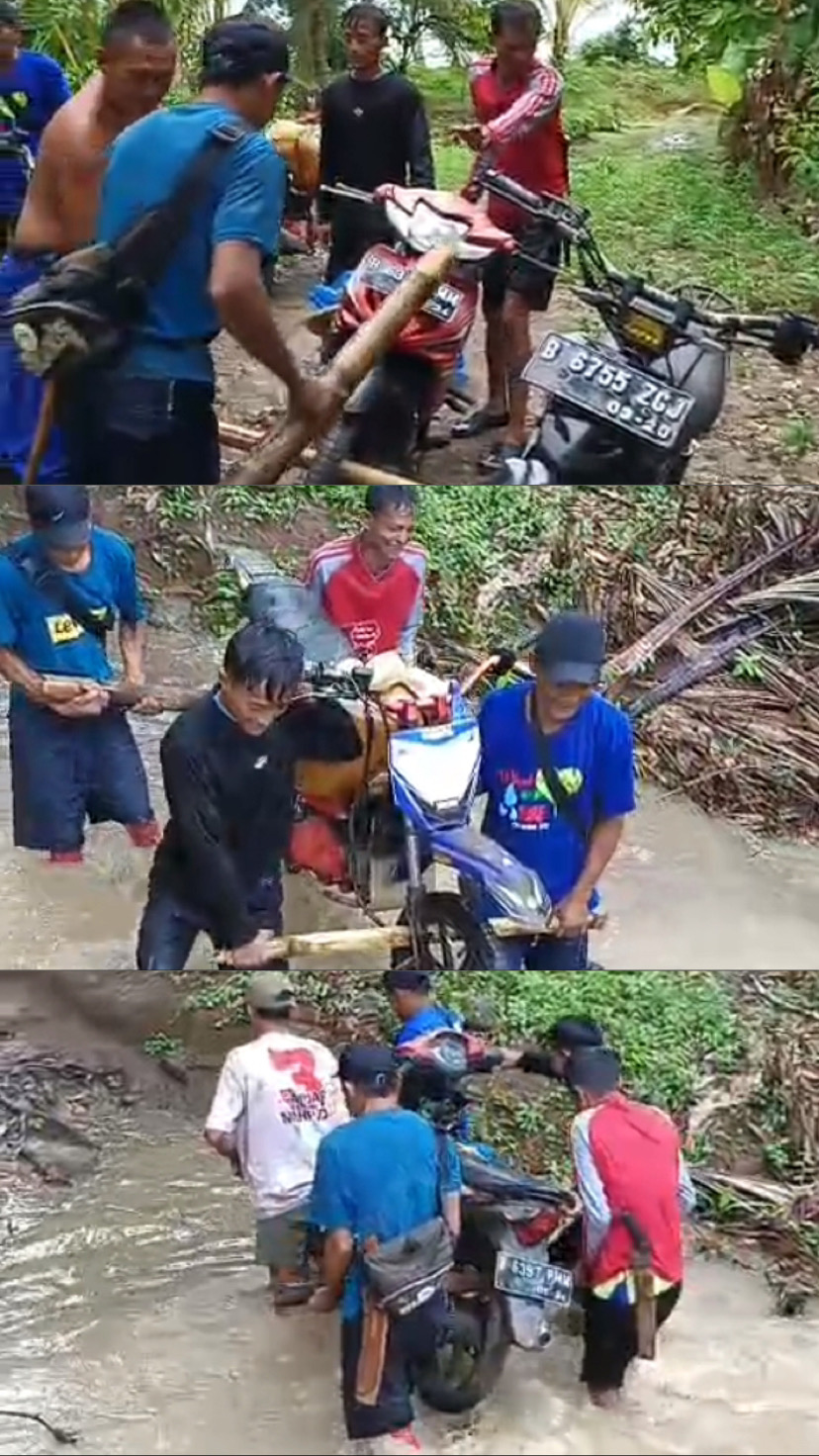 Kondisi ini sudah berlangsung lama. Namun warga tidak tinggal diam. Gotong royong menjadi andalan: mereka membangun jembatan darurat, memperbaiki jalan dengan material seadanya, bahkan memikul hasil panen bersama saat kendaraan tak bisa lewat.
