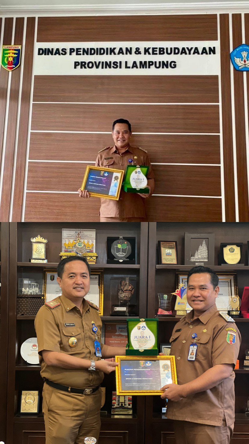 Penyerahan penghargaan dilakukan secara langsung oleh Kepala Dinas Pendidikan dan Kebudayaan Provinsi Lampung, Bapak Thomas Amirico, S.STP., M.H., dalam sebuah seremoni hangat dan penuh makna di Kantor Dinas Pendidikan dan Kebudayaan, Bandar Lampung, Selasa (24/6/2025).