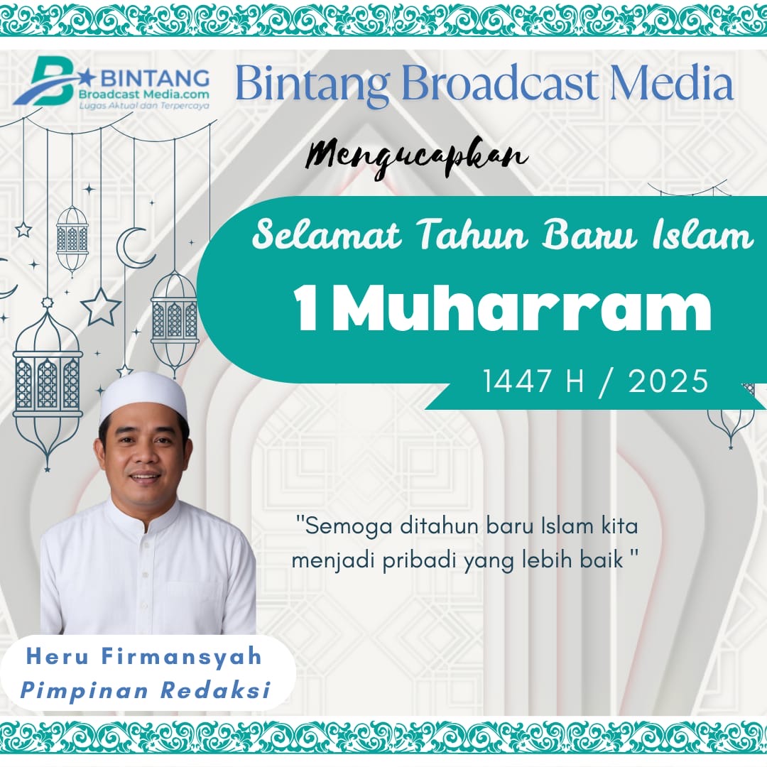 Dengan nuansa islami dan penuh makna, ucapan disampaikan langsung oleh Heru Firmansyah, Pimpinan Redaksi Bintang Broadcast Media, melalui sebuah desain visual yang kental akan nilai religius dan kearifan lokal. Dalam pesannya, Heru berharap agar tahun baru Islam ini dapat menjadi momentum untuk memperbaiki diri, memperkuat iman, serta meningkatkan kepedulian sosial di tengah masyarakat.