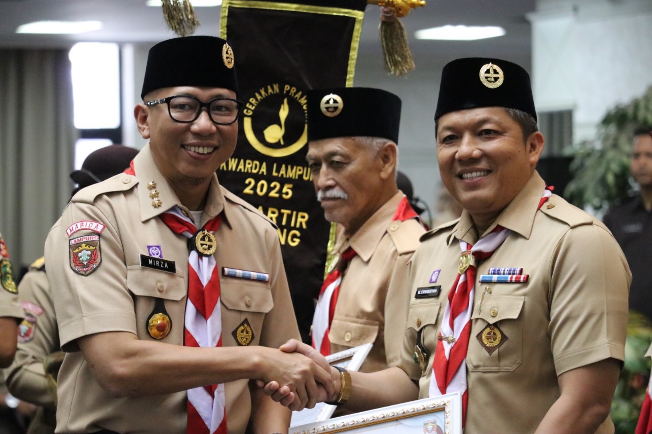 Dalam kesempatan tersebut, Gubernur Lampung Rahmat Mirzani Djausal selaku Ketua Majelis Pembimbing Daerah (Ka Mabida) Gerakan Pramuka Lampung menyerahkan penghargaan Kwarcab Tergiat 2025 kepada sejumlah kwartir cabang yang dinilai aktif dan berprestasi.