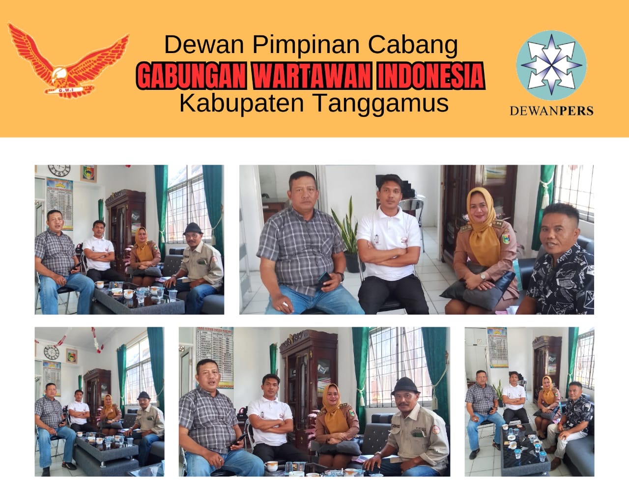 Kunjungan ini mewakili Ketua GWI DPC Tanggamus, M. Darwin CF. LE, yang berhalangan hadir. Adapun perwakilan yang hadir antara lain M. Ibnu Mas’ud (Sekretaris), Herwansyah (Bendahara), Syahroni (Kepala Divisi Inteligen dan Investigasi), serta Munazir (Azil) (Divisi Sarana dan Prasarana).