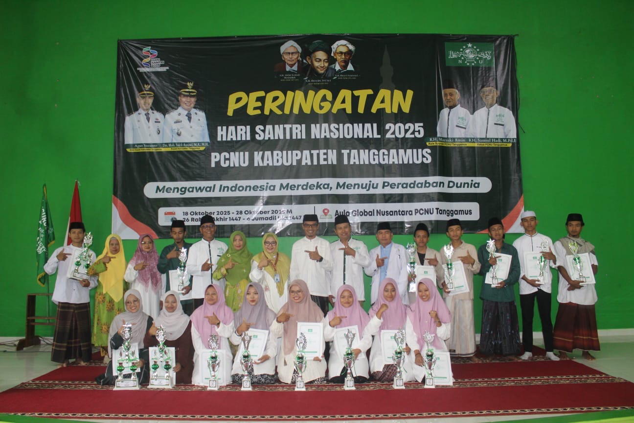 TANGGAMUS —Bintang Broadcast Media Semangat religius dan nasionalisme berpadu dalam peringatan Hari Santri Nasional (HSN) Tahun 2025 yang digelar Pengurus Cabang Nahdlatul Ulama (PCNU) Kabupaten Tanggamus di Aula Global Nusantara, Gisting, Selasa (28/10/2025).