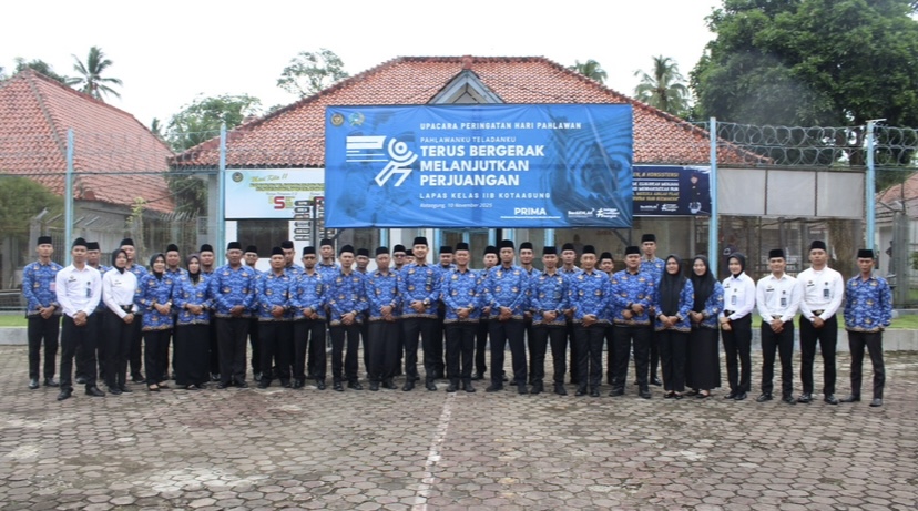INFO LASTAGUNG — Dalam rangka memperingati Hari Pahlawan Tahun 2025, Lembaga Pemasyarakatan (Lapas) Kelas IIB Kotaagung menggelar Upacara Peringatan Hari Pahlawan di lapangan utama Lapas, Senin (10/11/2025).