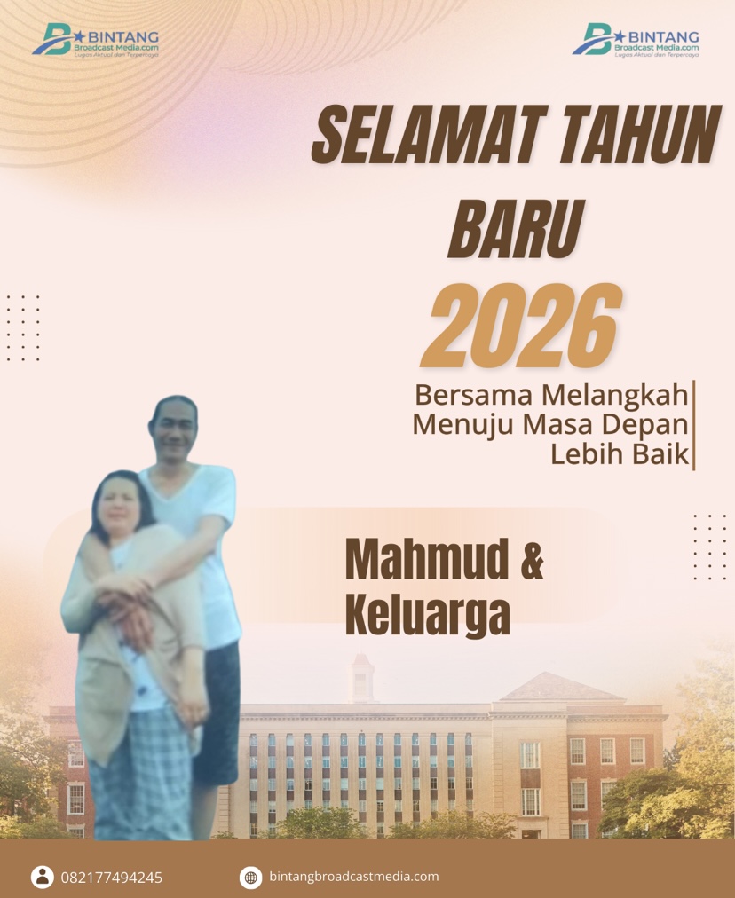 Lampung – Dalam rangka menyambut pergantian tahun 2026, Mahmud bersama keluarga menyampaikan ucapan Selamat Tahun Baru kepada seluruh masyarakat. Mereka berharap tahun baru ini membawa keberkahan, kesehatan, serta kebahagiaan bagi semua.