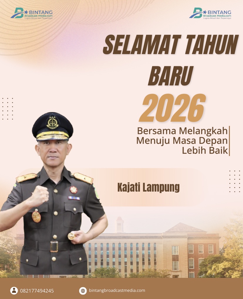Bandar Lampung – Menyambut pergantian tahun 2026, Kepala Kejaksaan Tinggi (Kajati) Lampung menyampaikan ucapan Selamat Tahun Baru kepada seluruh masyarakat Provinsi Lampung. Tahun baru diharapkan menjadi momentum penguatan integritas, profesionalisme, dan keadilan dalam penegakan hukum.