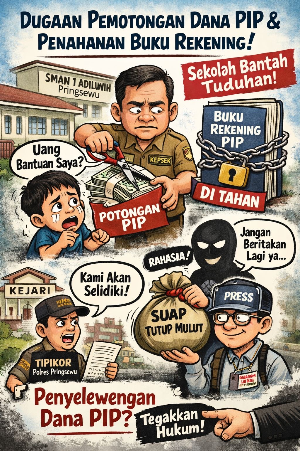 PESAWARAN/PRINGSEWU — Dugaan penyimpangan dalam pengelolaan dana Program Indonesia Pintar (PIP) kembali mencuat setelah sejumlah wali murid melaporkan adanya pemotongan dana bantuan yang seharusnya diterima utuh oleh siswa penerima manfaat.