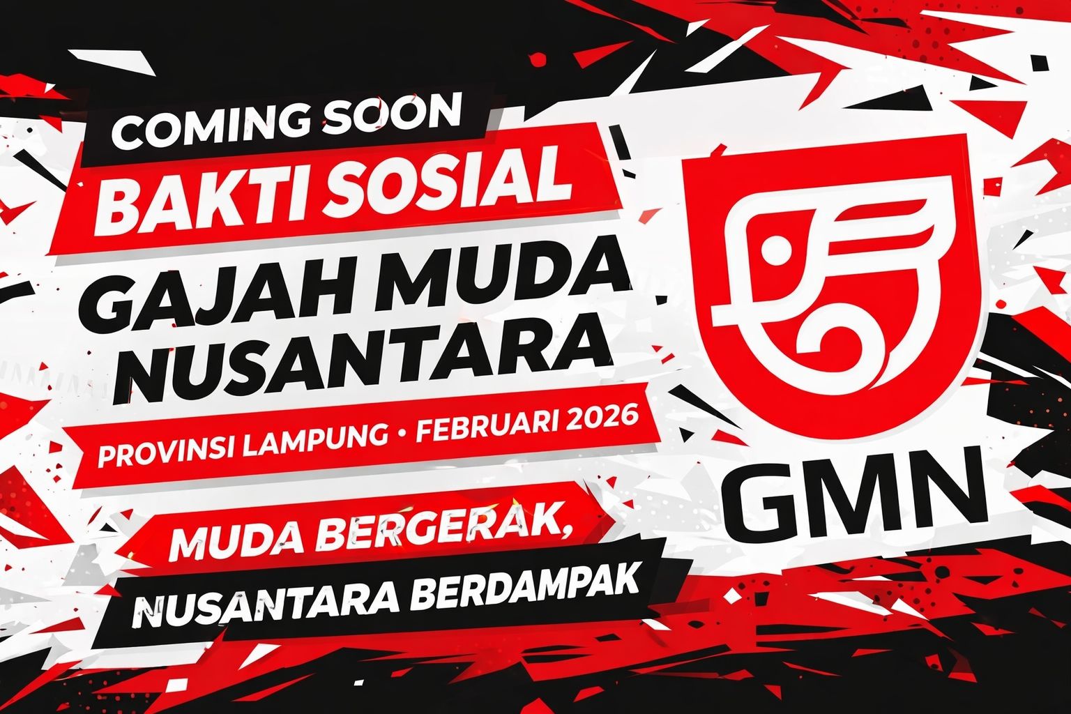 Lampung — Organisasi kepemudaan Gajah Muda Nusantara (GMN) Provinsi Lampung bersiap menggelar kegiatan perdana Bakti Sosial yang dijadwalkan berlangsung pada Februari 2026. Kegiatan ini menjadi langkah awal GMN Lampung dalam menghadirkan gerakan pemuda yang aktif, solutif, dan berdampak langsung bagi masyarakat.