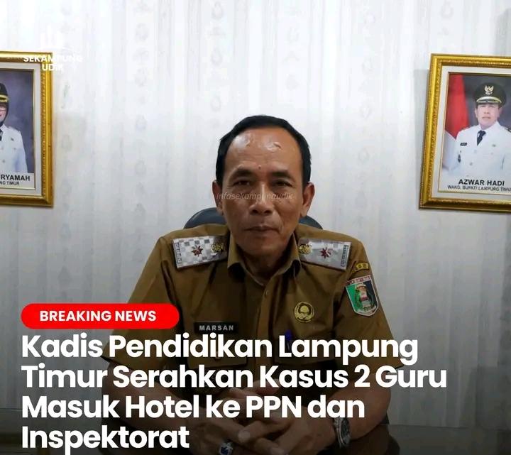 Kepala Dinas Pendidikan dan Kebudayaan Kabupaten Lampung Timur mengaku baru mengetahui kasus 2 Guru ASN yang viral masuk ke hotel dari media sosial dan berita Online.